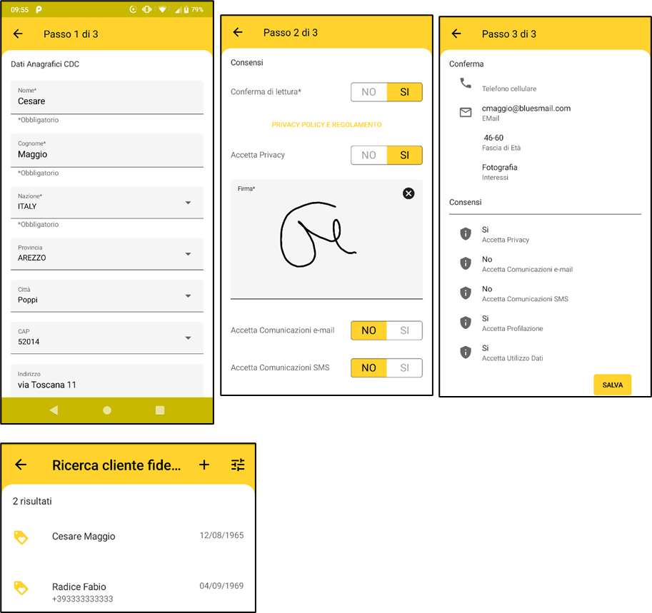 tap su “Acquisizione dati clienti” | |