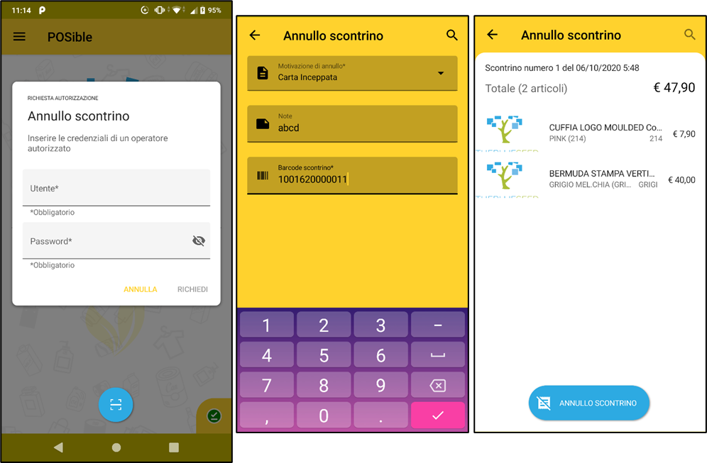 Dopo aver inserito le credenziali di un utente abilitato (super-user) si visualizza la pagina per annullare lo scontrino.