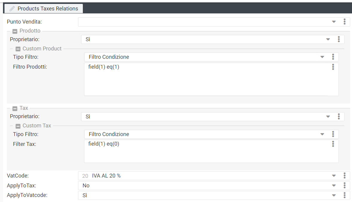 ➡️ Definire la relazione tra prodotti e IVA nella tabella kProductTaxRelation. Esempio: