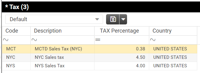 ➡️ Definire la lista delle tasse nella tabella kTax. Esempio: