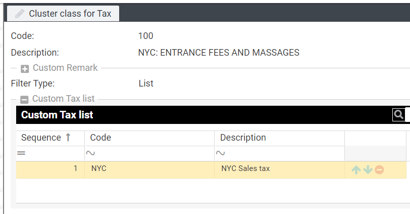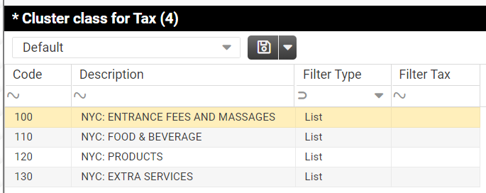 ➡️ Se necessario, definire la lista dei cluster delle tasse nella tabella kTax_Cluster. Esempio: