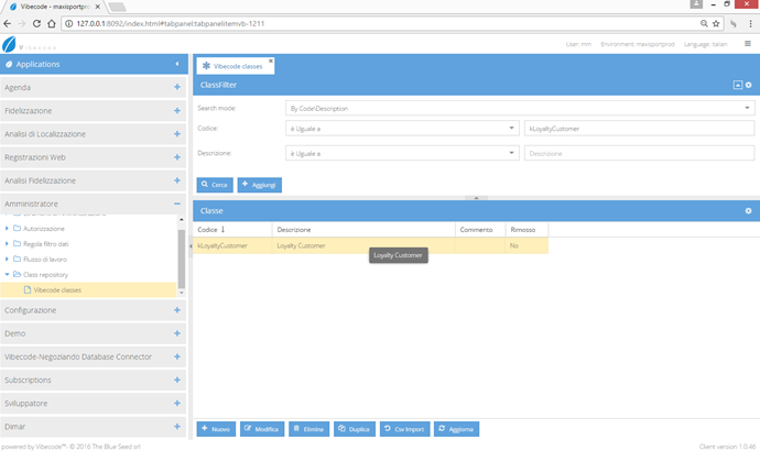 Nella App Administrator si trova il menu Class repository\Vibecode classes