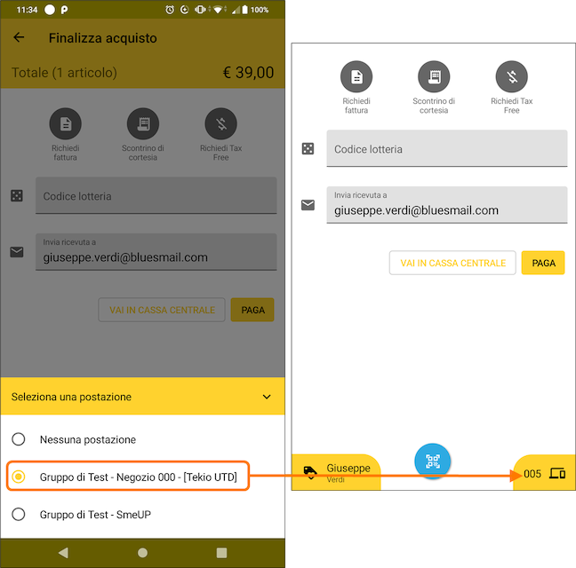 Quando si accede per la prima volta a questa pagina, all’utente viene chiesto di selezionare una postazione, per poter eseguire le operazioni di cassa.