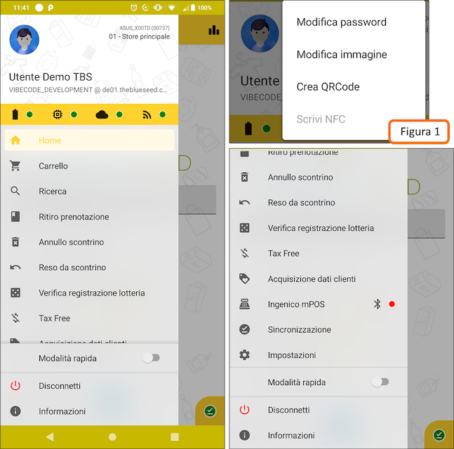Con un tap sull’avatar compare un popup (Figura 1) che consente di modificare la password dell’utente, l’immagine dell’avatar e di creare il QrCode da scansionare per eseguire la LOGINin automatico.