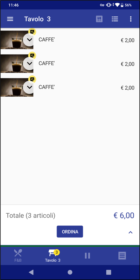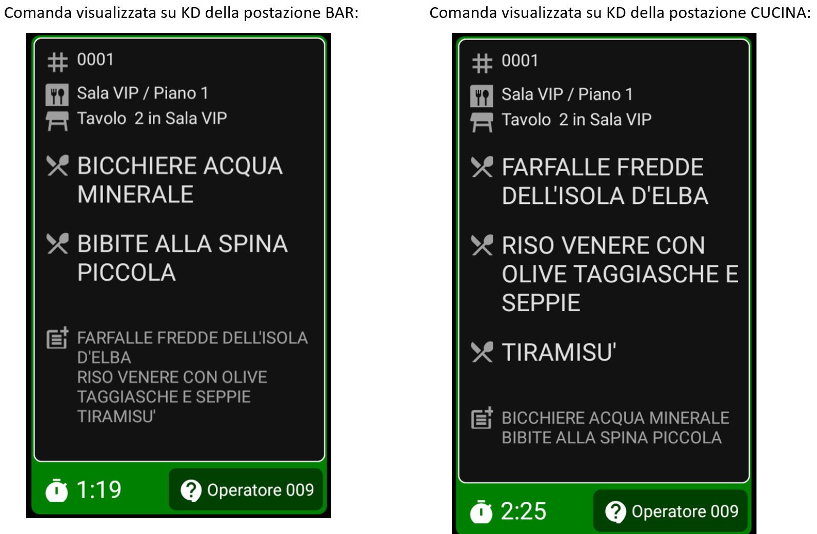 Dopo aver effettuato il pagamento, i dati vengono inseriti nella tabella delle ordinazioni Food & Beverage (kFBOrder) e la comanda viene inviata al Kitchen Display dell’area di competenza.