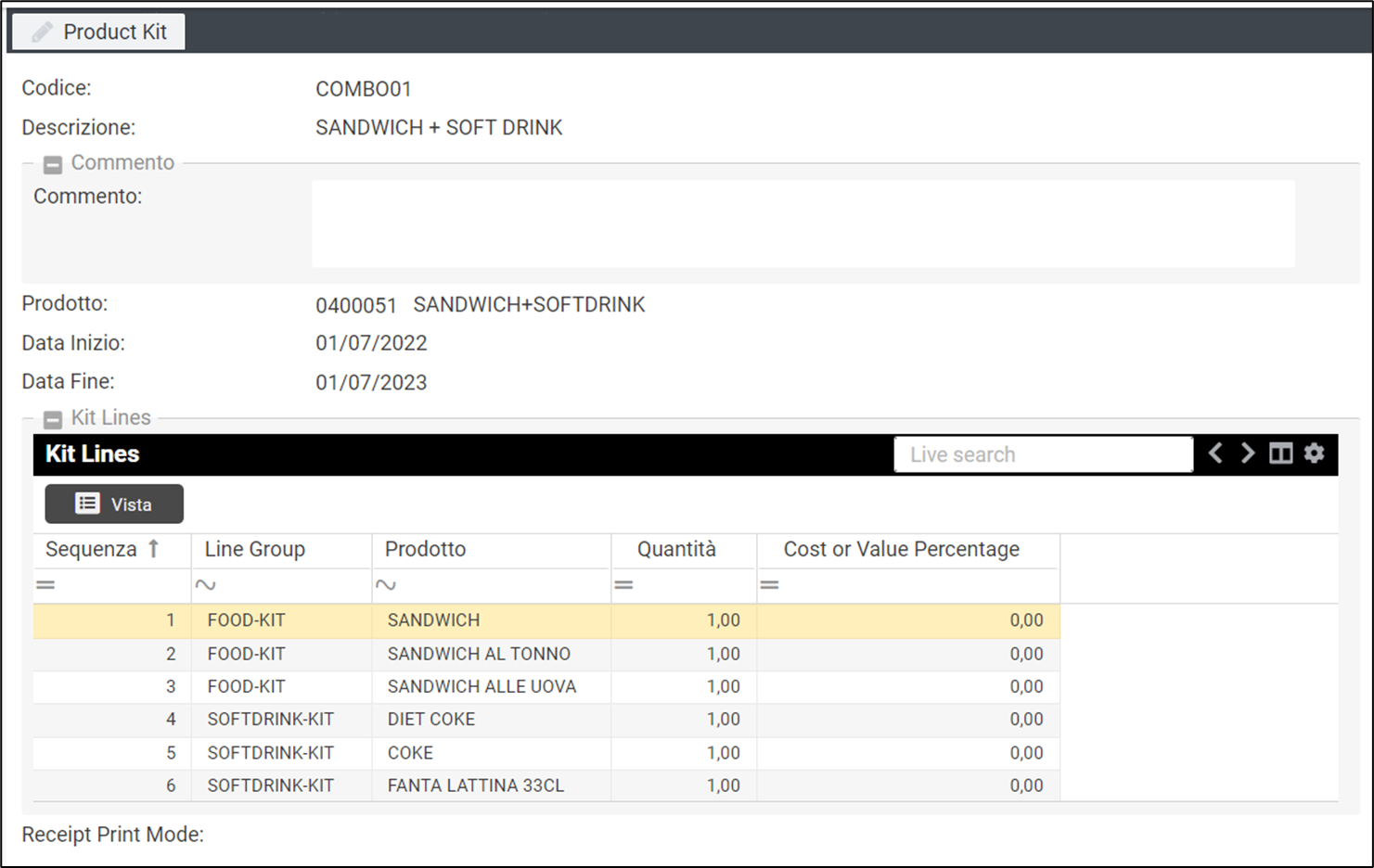 Nell’esempio seguente sono stati creati 2 prodotti KIT: