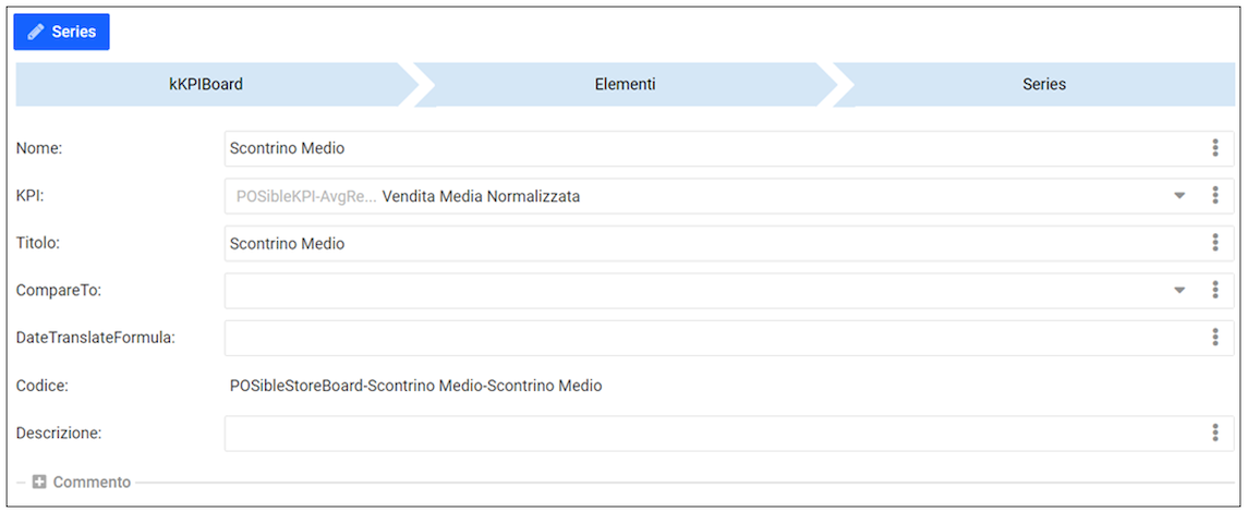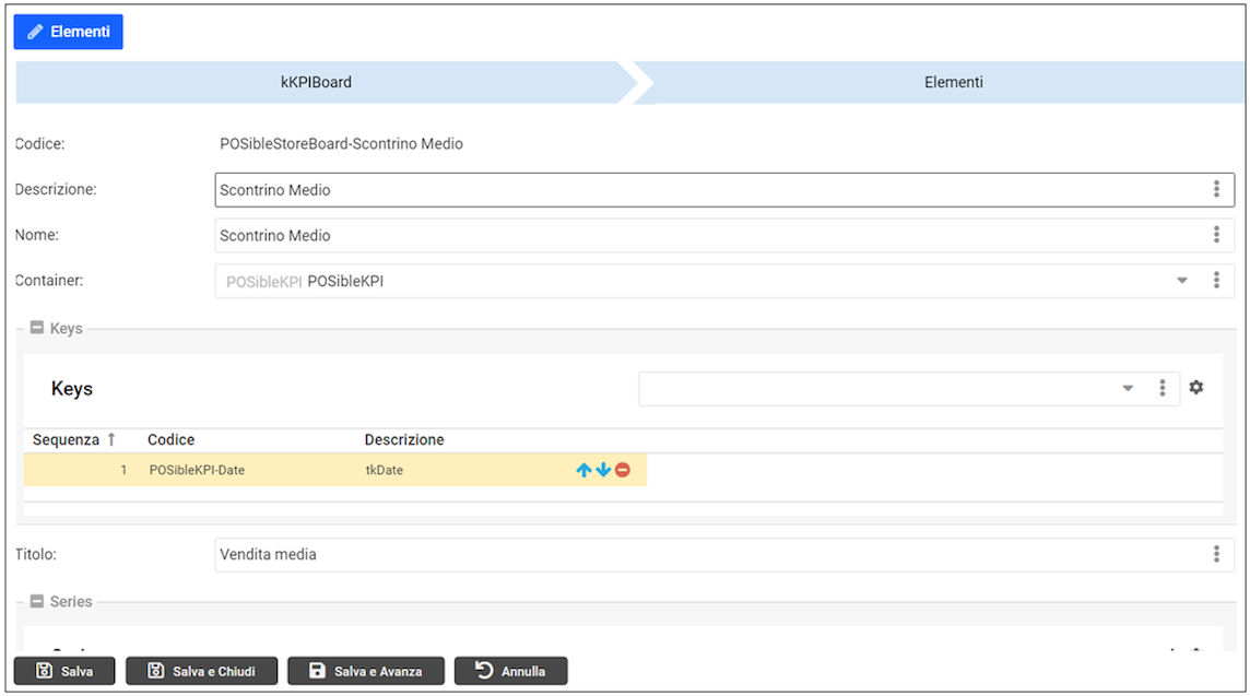 Il ContainerGrid “Series” visualizza e permette di gestire i record della tabella kKPIBoard_Items_Series.