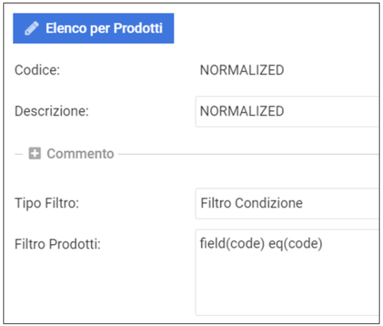 Nel Cluster dei Prodotti (tabella kProduct_C) è definito il seguente filtro che indica che tutti i prodotti appartengono all’elenco dei prodotti “NORMALIZED”: