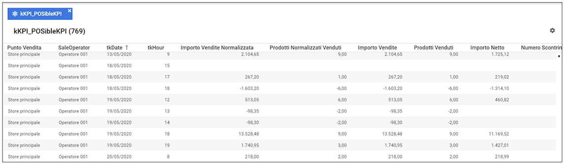 Tutti i dati sorgente per il calcolo dei KPI sono contenuti in una tabella “cubo” in Vibecode, che è il risultato dell’elaborazione delle query per l’estrazione dei dati da analizzare.