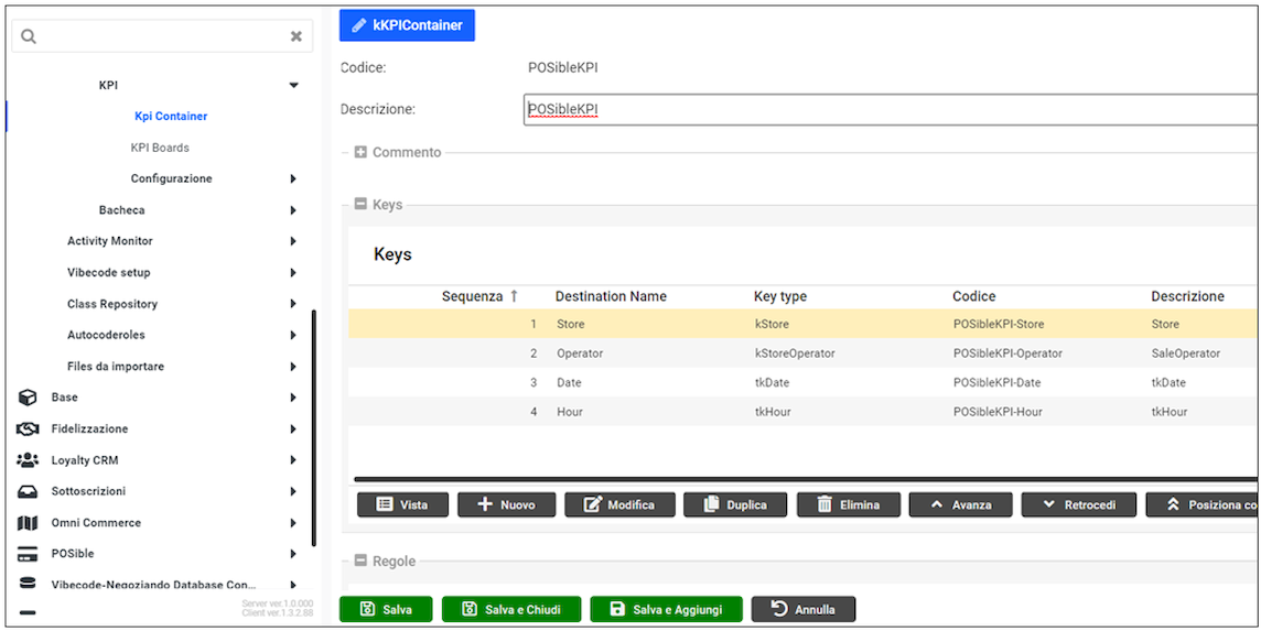 Il ContainerGrid “Regole” visualizza e permette di gestire i record della tabella kKPIContainer_Rules.