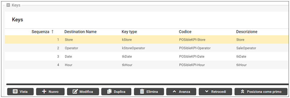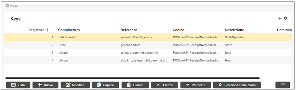 Il ContainerGrid “Keys” visualizza e permette di gestire i record della tabella kKPIContainer_Keys.
