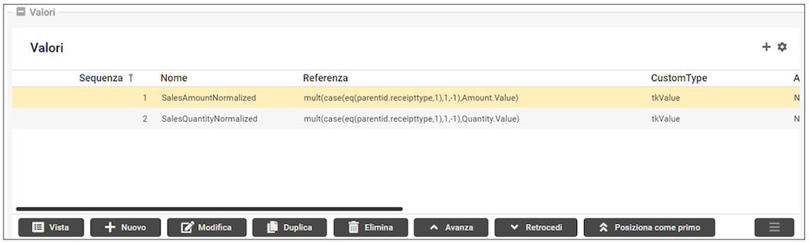 Nel primo esempio (a), la formula nel campo Referenza serve per cambiare di segno al valore dell’importo della vendita (Amount.Value), quindi: