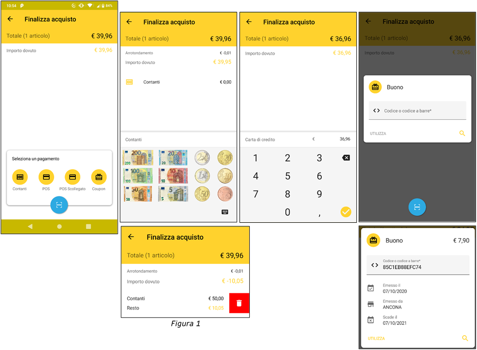 Il metodo “Coupon” consente di utilizzare dei buoni precedentemente emessi dal negozio a fronte di un reso, basta inserire il codice a barre oppure scansionarlo.