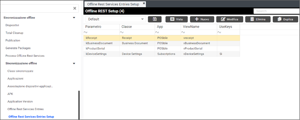 kOfflineRESTSetup: setup dei servizi REST delle tabelle popolate a partire dalla kOfflineRest