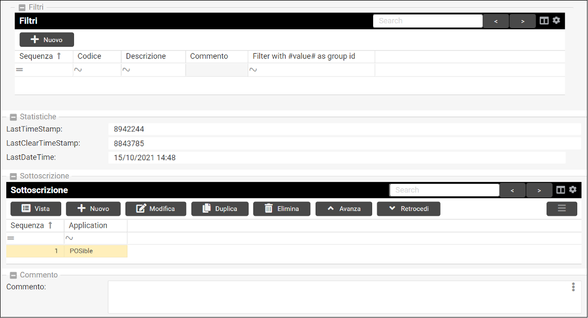 Campi: contiene l’elenco dei campi della tabella da esportare e inviare al client (es. POSible/RA app);