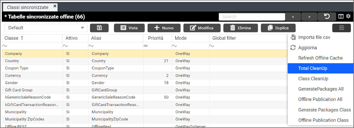 Refresh Offline Cache - ripulisce la cache dell’Offline; da utilizzare quando è necessario ricreare le query per la creazione dei pacchetti perché sono stati modificati i filtri nella kOfflineClasses.