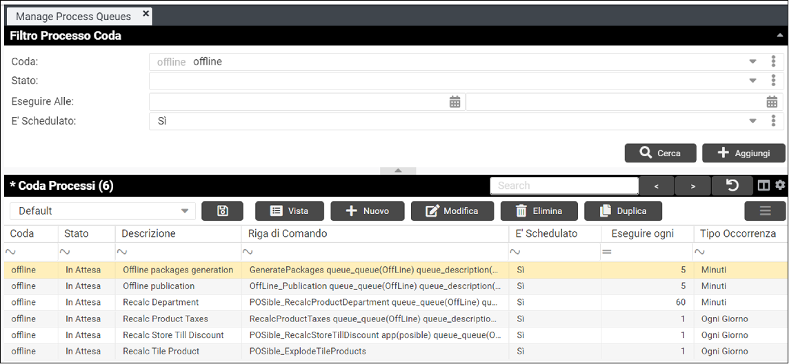 Processi nella coda “offline”:
