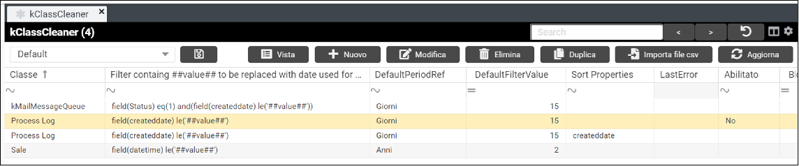 Cancella i vecchi dati presenti nelle tabelle che sono elencate in kClassCleaner. Schedulazione: eseguire una volta al giorno, ogni giorno.