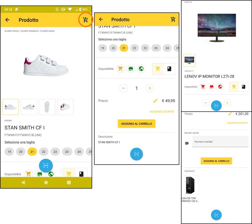 Se l’opzione “Modalità Rapida” è stata attivata nel menu FLYOUT, la scelta del prodotto mediante scansione non farà visualizzare questa pagina ma direttamente la pagina del CARRELLO.