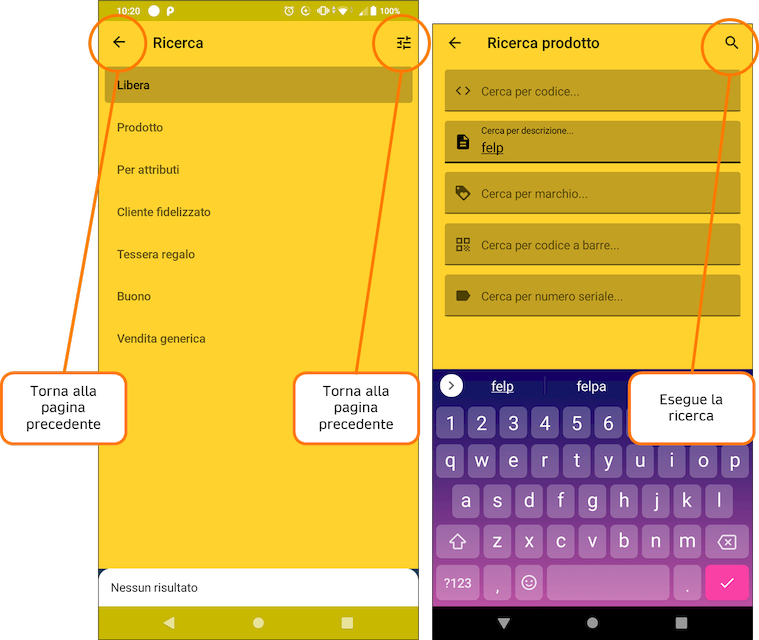 Anche in questo caso se gli elementi estratti dalla ricerca sono più di 20 verranno raggruppati per categoria. Come detto in precedenza fa eccezione la ricerca dei Clienti fidelizzati che restituirà al massimo i primi 20 elementi e non verranno mai raggruppati.
