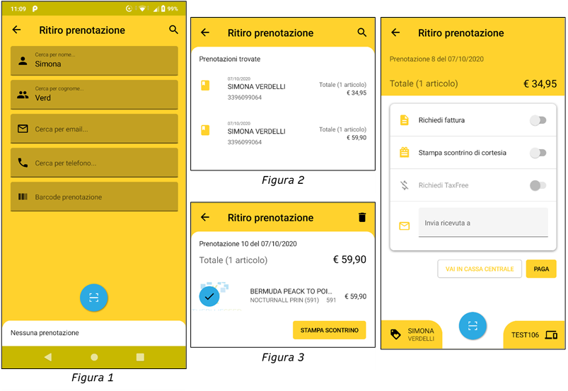 Le funzioni di pagamento, stampa scontrino o emissione fattura sono identiche a quelle di uno scontrino di vendita normale.