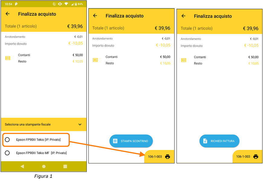 La fase finale della procedura di checkout prevede che l’utente scelga la stampante fiscale su cui stampare lo scontrino (Figura 1).
