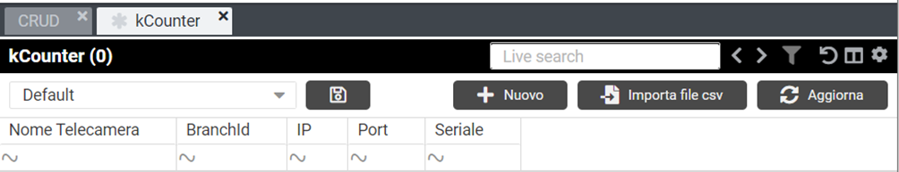 Andando su Vibecode, utilizzando la funzione “Crud”, ricerchiamo la classe di riferimento kCounter e clicchiamo su Genera Crud. Cliccando su “Nuovo” è possibile inserire i valori per creare direttamente una nuova riga.
