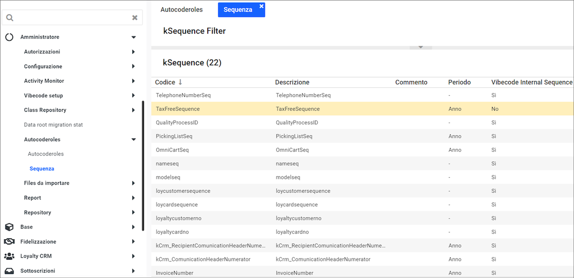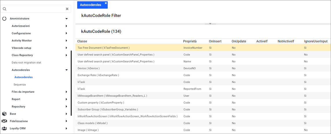 AutoCodeRules: contiene le definizioni per l’autocompletamento di un campo (es. una sequenza numerica);
