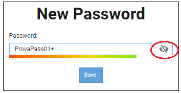 Man mano che si procede con l’inserimento della nuova password il sistema provvederà ad indicare se i nuovi caratteri inseriti rispettano le richieste. Il simbolo cerchiato nello screenshot sotto permette di visualizzare la password.