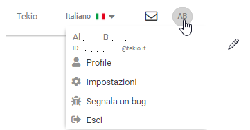 Dopo aver eseguito l’accesso, cliccare sulle proprie iniziali, poste in alto a destra della pagina principale: comparirà un menù.