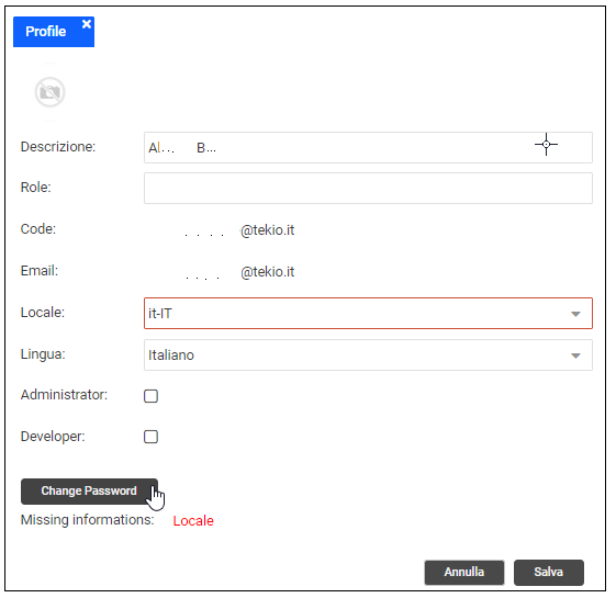 5. La password è stata modificata. Salvare la schermata principale del proprio profilo.