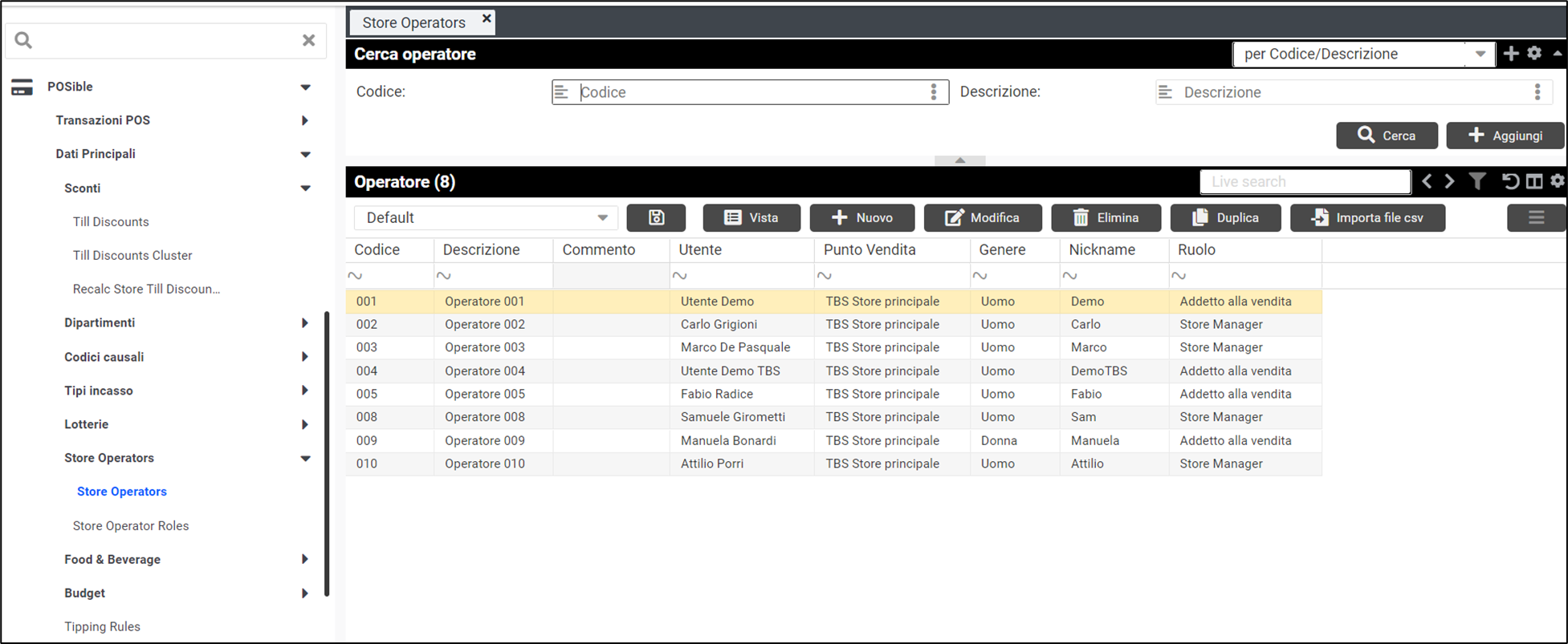 Il menu di Vibecode ha una struttura ad albero, le varie voci del menu rappresentano le foglie. Le voci del menu sono raggruppate in nodi, o sezioni, che si espandono/collassano con un click.