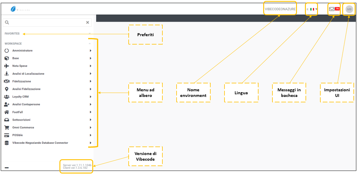 Nella parte superiore del menu ad albero di Vibecode c'è la sezione dei preferiti (Favorites), una serie di voci di menu che l’utente sceglie a propria discrezione.