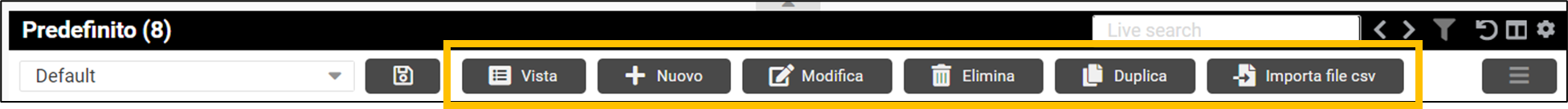Troverai automaticamente un search panel su ogni applicazione o funzione che preveda l’interazione con dei dati e, di conseguenza, con una grid.